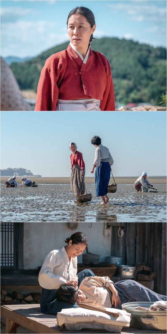 공개된 스틸에는 목포 아낙네로 변신한 문소리의 모습이 담겨 있어 눈길을 끈다. 억센 바닷바람 탓에 까슬한 얼굴, 고된 바닷일과 생활의 무게가 여실이 느껴지는 어깨가 보는 이의 마음을 짠하게 만든다. 억척스럽고도 단단한 눈빛너머로 이유모를 한(恨)이 묻어나는 듯해 극 중 그가 품고 있는 사연에 궁금증이 쏠린다.