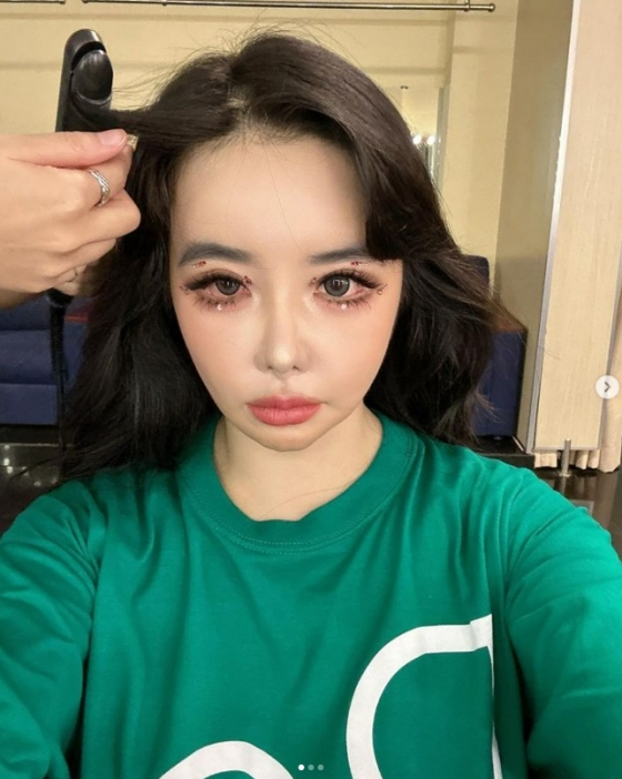 사진 속 박봄은 환복하기 전, 화려하게 메이크업을 하고 있는 모습이었다.