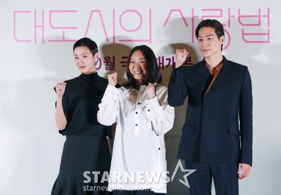 배우 김고은, 이언희 감독, 배우 노상현이 23일 오후 서울 메가박스 코엑스에서 진행된 영화 '대도시의 사랑법'(감독 이언희) 언론시사회 및 기자간담회에 참석해 포즈를 취하고 있다.