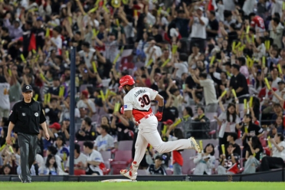 KIA 타선도 끊임없이 불을 뿜었다. 4회 말 선두타자 소크라테스가 우측 담장 너머로 아치를 그렸다. 이승민의 3구째 시속 129㎞ 슬라이더를 통타해 120m 밖으로 보냈다. 소크라테스의 시즌 26호 홈런.