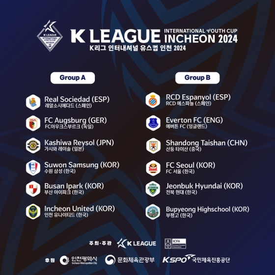 A조는 레알 소시에다드, FC아우크스부르크, 가시와 레이솔, 수원삼성, 부산아이파크, 인천유나이티드, B조는 RCD 에스파뇰, 에버튼 FC, 산둥 타이산, FC서울, 전북현대, 부평고로 편성됐다.
