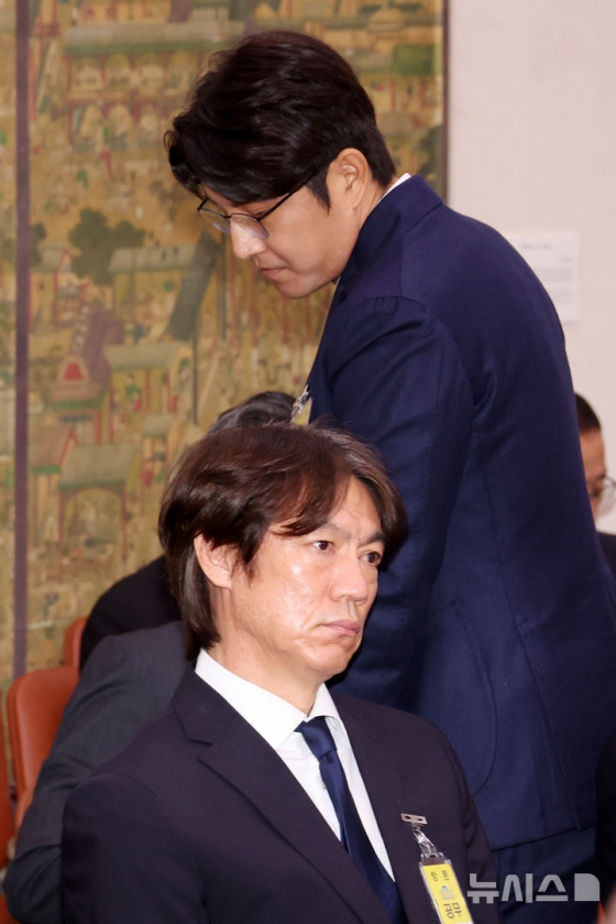 24일 서울 여의도 국회에서 문화체육관광위원회의 대한축구협회 운영 실태, 감독 선임 과정 논란 등에 대한 현안질의가 진행됐다. 홍명보 감독은 증인으로, 박주호 위원과 박문성 위원은 참고인으로 출석했다.