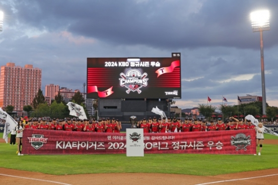 하지만 KIA에는 또 다른 시작이었다. 경기 종료 후 KIA는 홈 관중과 함께 정규시즌 우승 하이라이트를 지켜보며 한국시리즈 출정식을 가졌다. 한국시리즈 출정 영상이 종료된 뒤에는 대표 응원가 '외쳐라 최강기아'와 '광주의 함성'이 울려퍼졌다. "압도하는 가을! 불패 신화. 팬 여러분과 함께 V12를 향해 달리겠습니다"라는 슬로건이 담긴 현수막이 걸린 가운데 선수단과 함께 한국시리즈 엠블럼이 공개됐다.
