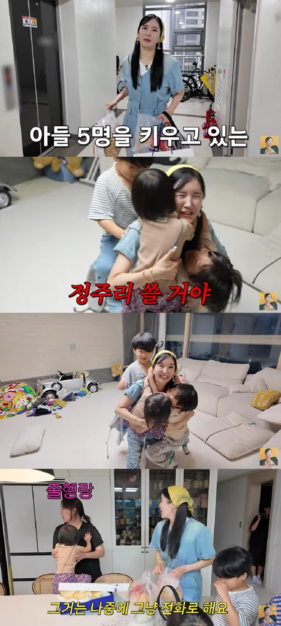 26일 유튜브 채널 'A급 장영란'에는 '아들만 다섯! 육아퀸 장영란 놀라 자빠진 정주리 5형제 텐션 (역대급)'이라는 제목의 영상이 공개됐다.