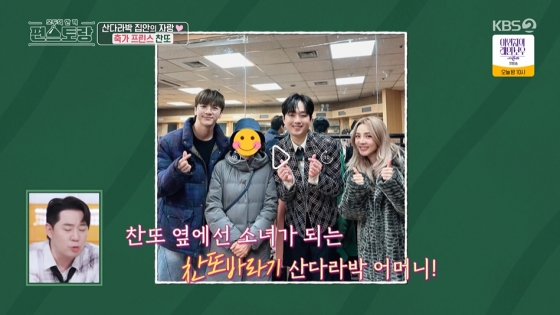 27일 방송된 KBS 2TV 예능 프로그램 '신상출시 편스토랑'에서는 가수 이찬원이 산다라박과의 인연을 자랑한 장면이 그려졌다.