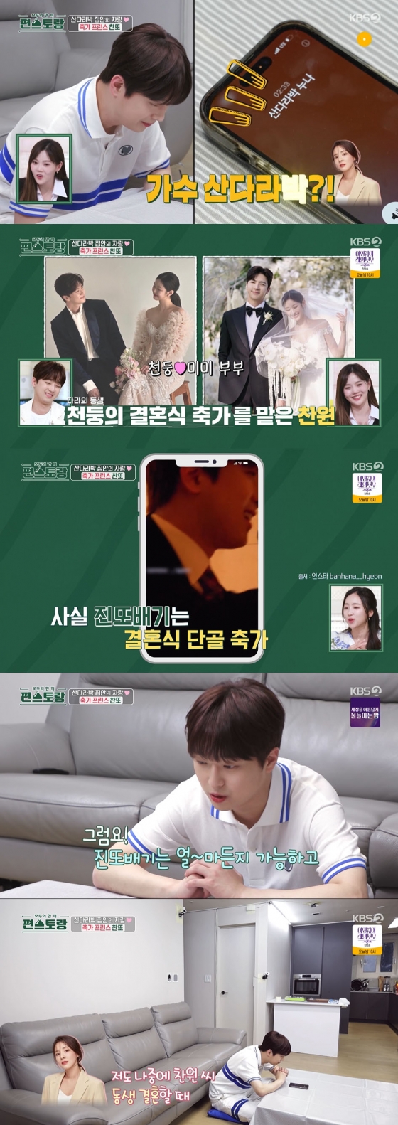 이찬원은 "어느덧 시간이 다가왔다. 불러줘서 영광이다"라고 했다. 산다라박은 "정말 감사해요. 절을 하고 싶은 심정이에요"라고 고마움을 표하며 이찬원이 산다라박의 친동생 천둥과 걸그룹 구구단 출신 미미의 결혼식에서 축가를 맡은 소식을 전했다.