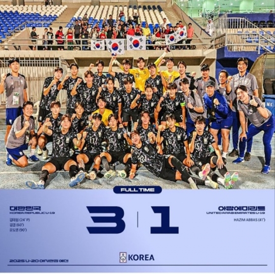 이창원 감독이 이끄는 U-19 대표팀은 28일(한국시간) 쿠웨이트의 압둘라 알 칼리파 스타디움에서 열린 2025 AFC 20세 이하 아시안컵 예선 C조 3차전 아랍에미리트(UAE)와 경기에서 3-1로 승리했다.
