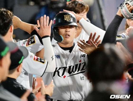 하지만 KT는 쉽게 물러서지 않았다. 곧바로 이어진 4회말 대거 5득점을 올리며 승부를 6-6 원점으로 돌린 것이다. 무사 1, 2루 기회에서 강백호가 우전 적시타를 친 뒤 이어진 만루 기회에서 오윤석이 좌전 적시타, 황재균이 우익수 희생타, 배정대가 2타점 좌중간 적시 2루타를 각각 쳐내며 6-6을 만들었다.