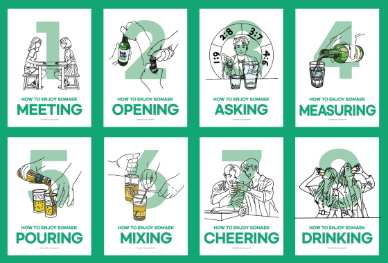 퍼니준은 기존에 선보였던 소주 음주 에티켓을 담은 '소주 마시는 법(How to Drink Soju)'에 이어, 이번에는 소맥을 즐기는 방법을 8단계로 세분화해 일러스트로 풀어냈다.