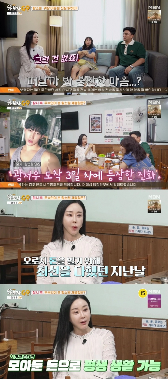28일 방송된 MBN 예능프로그램 '가보자GO'에는 함소원이 출연해 진화와의 위장 이혼설의 진실을 밝혔다. 그는 "우리가 위장 이혼할 정도의 빚이 있는 것도 아니다"라고 말했다.