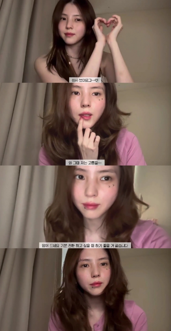 배우 한소희가 과거 피어싱을 뚫었던 것을 후회하며 스티커로 기분 전환에 나섰다.