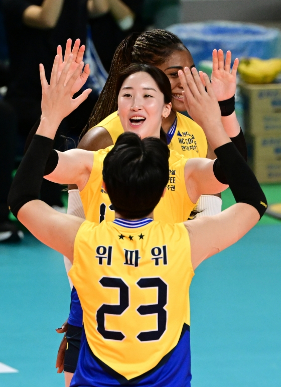 우승팀 현대건설의 저력이 발휘됐다. 2세트 초반부터 모마의 득점포가 불을 뿜었다. 연속 득점을 올리며 흐름을 잡았다. 이다현은 박정아의 스파이크를 블로킹으로 받아쳤다.