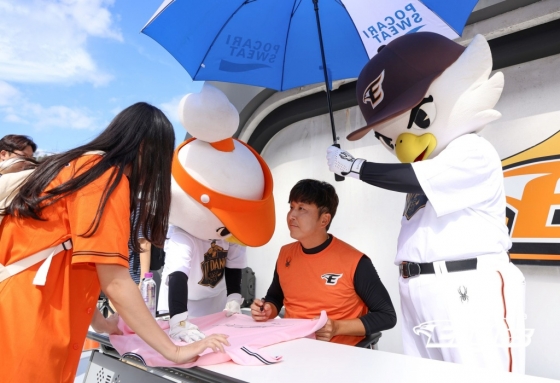 이어 4구째. 한가운데 다소 높은 코스로 들어온 127km 속구를 최정원이 힘차게 배트를 휘돌리며 깨끗한 우전 안타로 연결했다. 정우람과 한화 더그아웃에 있는 동료들도 아쉬운 미소를 지었다. 최정원은 마지막으로 그라운드를 떠나는 레전드 선배를 향해 최선을 다하는 타격을 펼치며 예우했다.