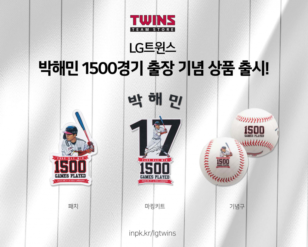 LG 트윈스가 박해민(34)의 KBO 리그 개인 통산 1500경기 출장 달성을 기념해 상품을 출시한다.