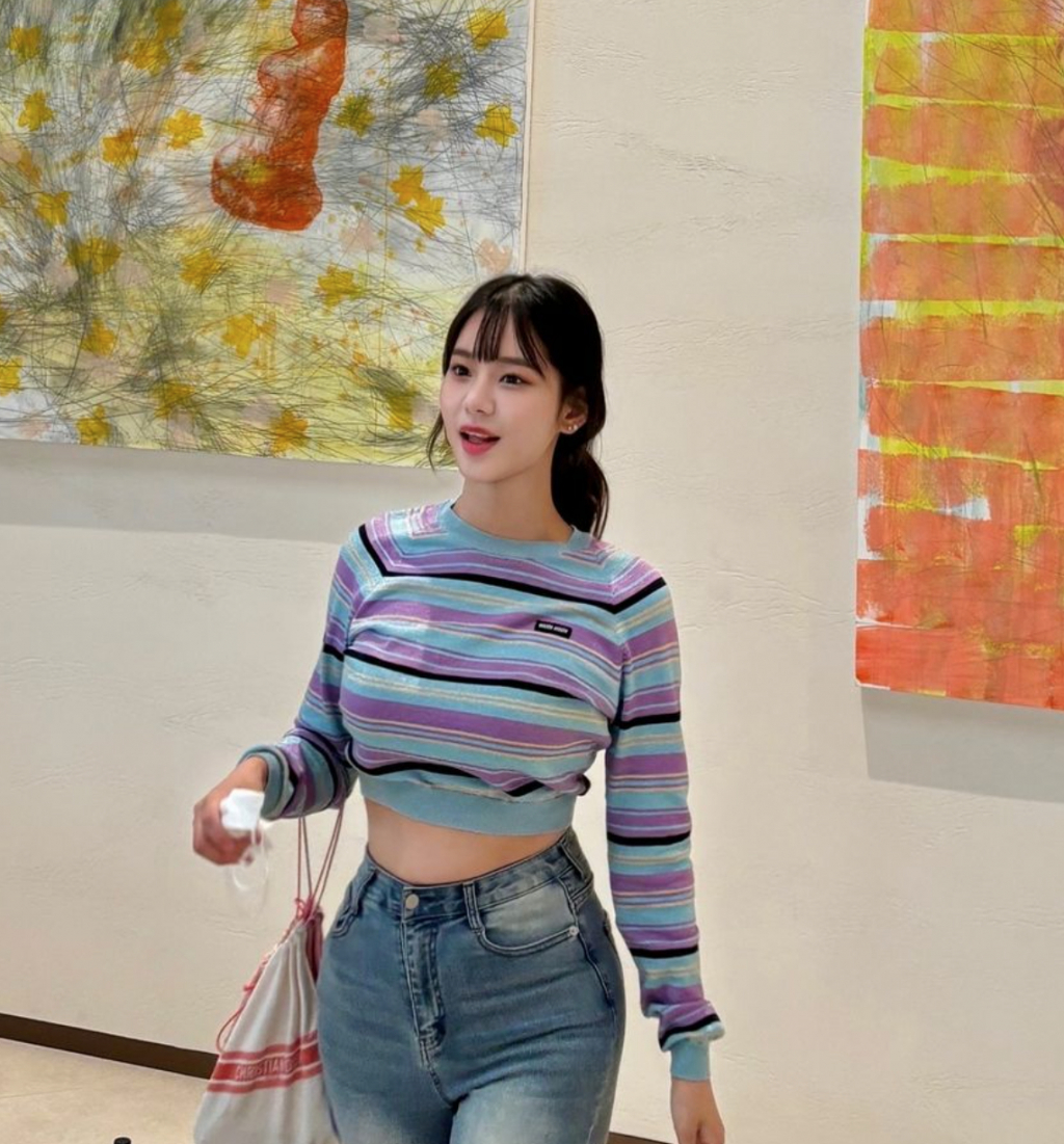 전시회장에서도 맹승지는 숨겨지지 않는 볼륨감 라인과 매끈한 복근으로 주목을 이끈다.