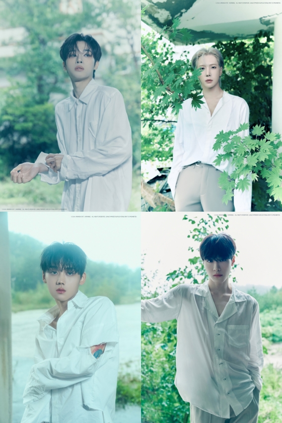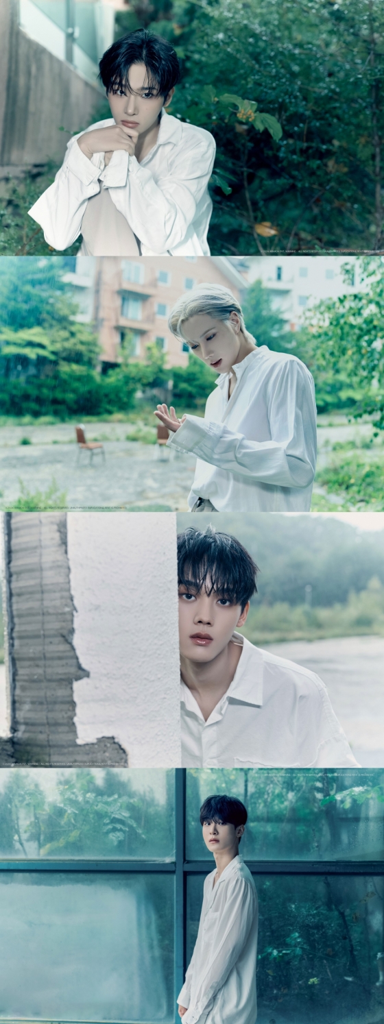 이날 공개된 첫 번째 콘셉트 단체 포토 속 원팩트 멤버들은 한적한 숲, 포스트 아포칼립스를 연상시키는 휑한 건물이 보이는 배경 뒤로 흰색 셔츠와 무채색 팬츠 스타일링을 통해 몽환적인 감성을 자아냈다. 특히, 아련한 눈빛으로 어딘가를 바라보는 시선을 통해 더욱 쓸쓸한 분위기를 배가 시켰다.