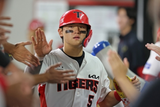 김도영은 바뀐 투수 김민규의 5구째 슬라이더를 공략해 중전 1타점 적시타로 3-2 역전을 만들었다. 윤도현의 타석 때 상대 폭투와 송구 실책이 이어져 5-2가 됐다.