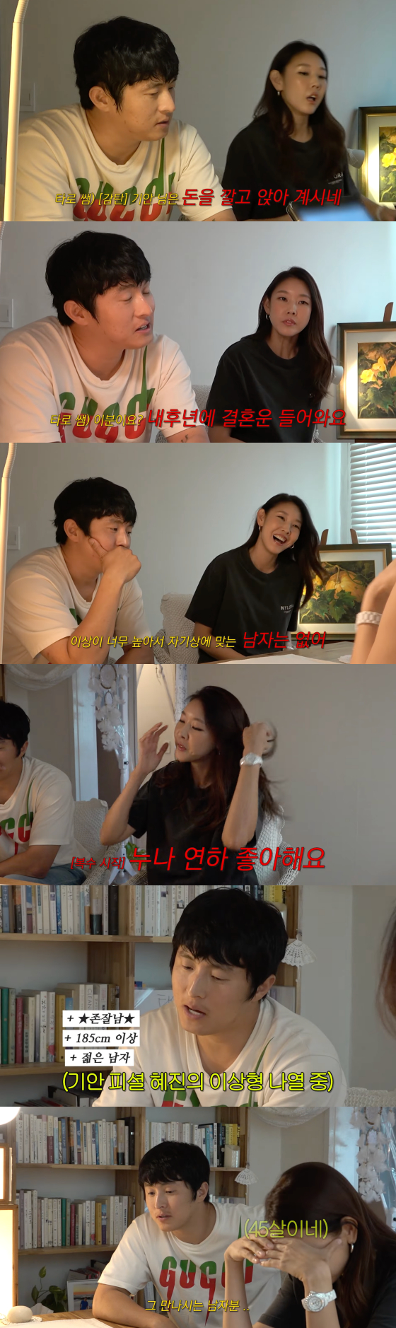 옆에서 이를 듣던 기안84는 "한혜진 누나는 연하를 좋아한다. 거기에다가 키가 커야 하고 잘 생겨야 하고 지적인 것까지 갖춰야 한다"고 폭로해 웃음을 안겼다.