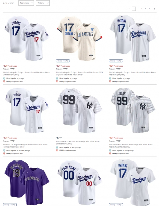 MLB 공식 굿즈판매 사이트에는 인기 상품 페이지의 절반 가량을 오타니 유니폼이 채우고 있을 정도로 얼마나 많은 이들이 그의 유니폼을 찾는지 알 수 있다.
