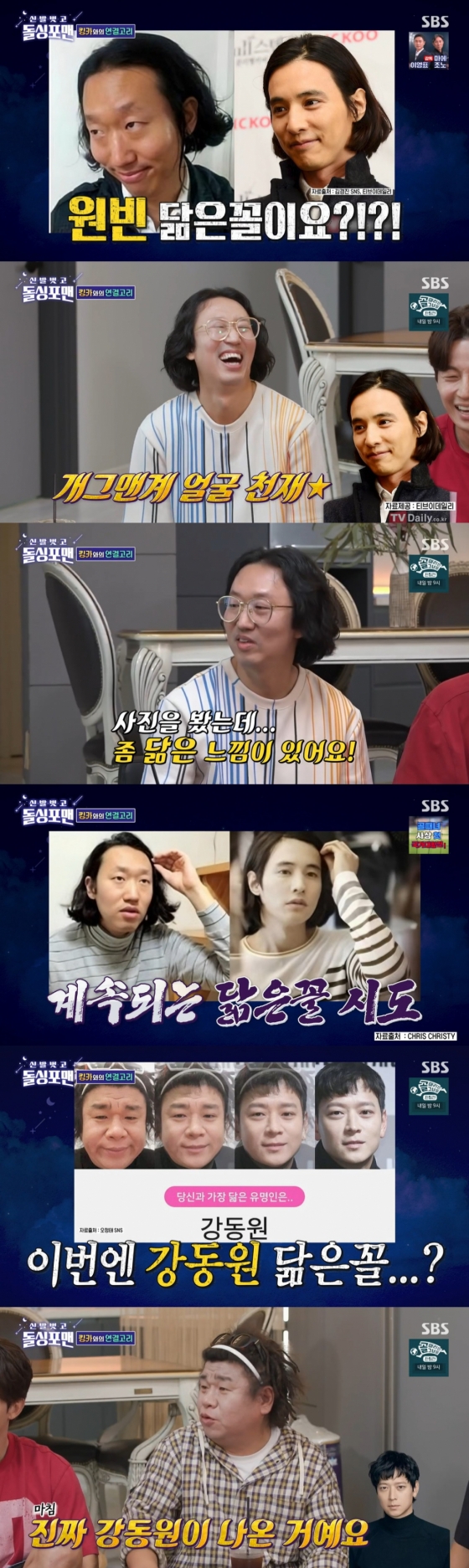 오정태는 강동원과 닮았다고. 그는 "닮은꼴 어플에 단번에 저렇게 나왔다. 와이프가 나를 강동원이라고 부른다. '진짜 강동원이 떴어'라고 했다. 어플에서 그렇게 나왔다"라며 강동원과의 닮은꼴 비주얼을 주장했다.