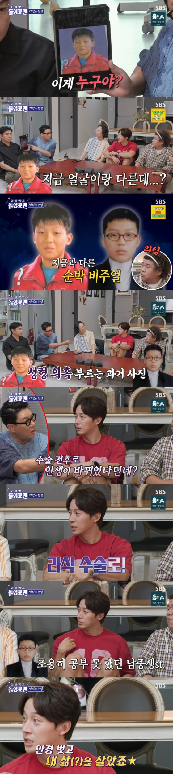 이에 허경환은 "수술 안 했다"라고 해명했다. 하지만 '수술 전후로 인생이 바뀌었다'라는 말에는 "라식 수술"이라면서 "옛날에는 뿔테안경을 끼고 다녔다. 조용히 공부 못 했던 남중생이었다. 안경 벗고 내 삶을 살았다"라며 훈훈한 미모를 뽐냈다.