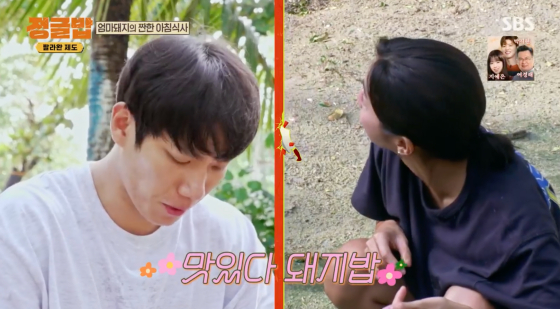 돼지밥을 맛본 유이는 "맛있다"며 감탄했고, 김경남 역시 "맛있다"고 동의했다.