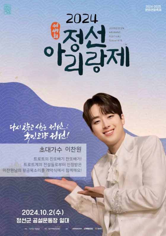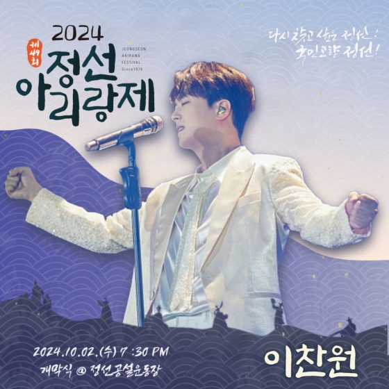 이찬원은 10월 2일 오후 7시 30분 강원 정선군 정선읍 봉양리 정선 공설운동장 메인무대에서 열리는 '2024 정선아리랑제' 개막식에서 축하공연을 한다.