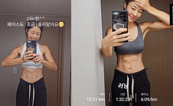 지난 1일 이지현은 개인 계정을 통해 "날씨 덕분에 15km를 신나게 달렸다"고 러닝을 했음을 인증했다.