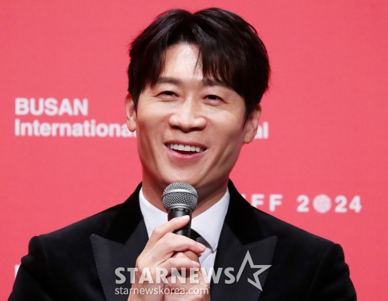 배우 진선규가 2일 오후 부산 해운대구 우동 신세계백화점 센텀시티점에서 진행된 제29회 부산국제영화제(BIFF) 개막작 '전, 란' 기자회견에 참석해 인사말을 하고 있다.
