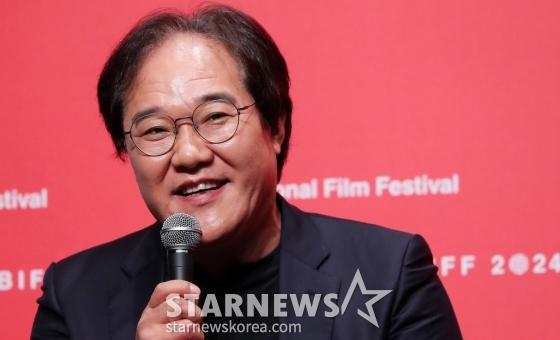 김상만 감독이 2일 오후 부산 해운대구 우동 신세계백화점 센텀시티점에서 진행된 제29회 부산국제영화제(BIFF) 개막작 '전, 란' 기자회견에 참석해 인사말을 하고 있다.