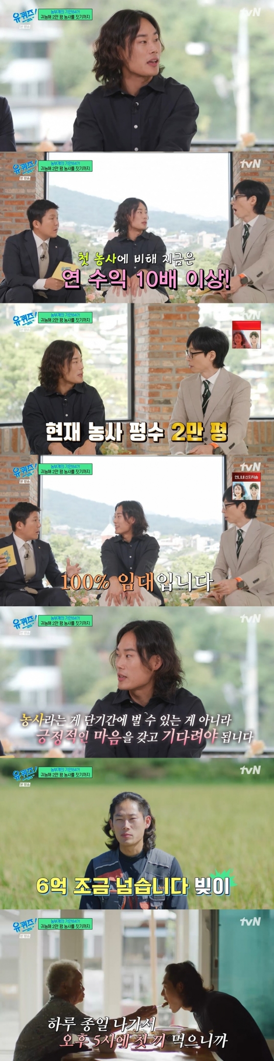 김제에서 쌀과 버섯을 농사 짓고 있는 그는 "첫 해에는 연봉이 350만원이었다. 그만두고 싶다는 생각도 했었다. 그런데 논에서 일을 하고 깨끗해진 공간을 보면 그렇게 기분이 좋더라. 지금은 그때보다 10배 이상 번다"라며 천생 농부로서의 면모를 보여줬다.