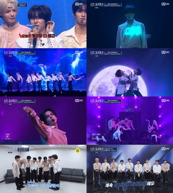 그룹 크래비티(CRAVITY : 세림.앨런.정모.우빈.원진.민희.형준.태영.성민)가 독기 품은 무대로 1차전에서 승리하며 반전 서사를 썼다.
