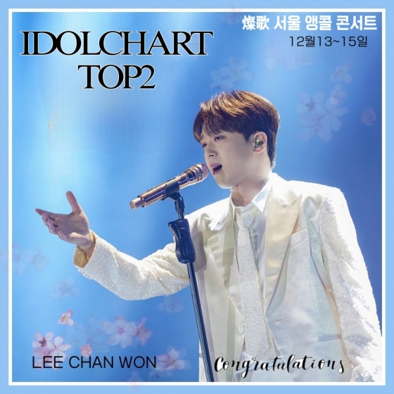 한편 이찬원은 10월 12일~13일 오후 5시 대구 EXCO에서 '찬가(燦歌) 공연을 통해 팬들과 만난다. 이찬원은 11월 2일~3일 청주, 11월 23일~24일 광주에 이어 12월 13일~15일 서울 KSPO DOME(체조경기장)에서 서울 앙코르 콘서트를 펼치며 단독 콘서트 대장정을 마무리한다.