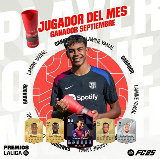 스페인 라리가는 5일(한국시간) 공식 홈페이지를 통해 9월의 선수를 발표했다. 사무국은 "야말은 9월 한 달 동안 결정적인 활약을 펼쳤다"며 "그는 끊임없이 위협적인 선수다. 9월에 3골 1도움을 기록하며 능력을 입증했다. 지로나전에서는 두 골을 넣었고, 환상적인 패스로 하피냐의 득점도 도았다"고 발표했다.