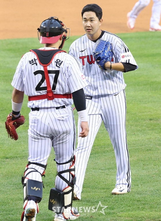 무척 중요한 승리였다. 선발 투수 임찬규가 5⅓이닝 7피안타 무사사구 4탈삼진 2실점(1자책)으로 버텼고, 엘리에이저 에르난데스(1⅔이닝)-김진성(1이닝)-유영찬(1이닝)이 실점 없이 틀어막았다. 투수도 최소한으로 아껴 시리즈 운영에도 숨통이 트였다.