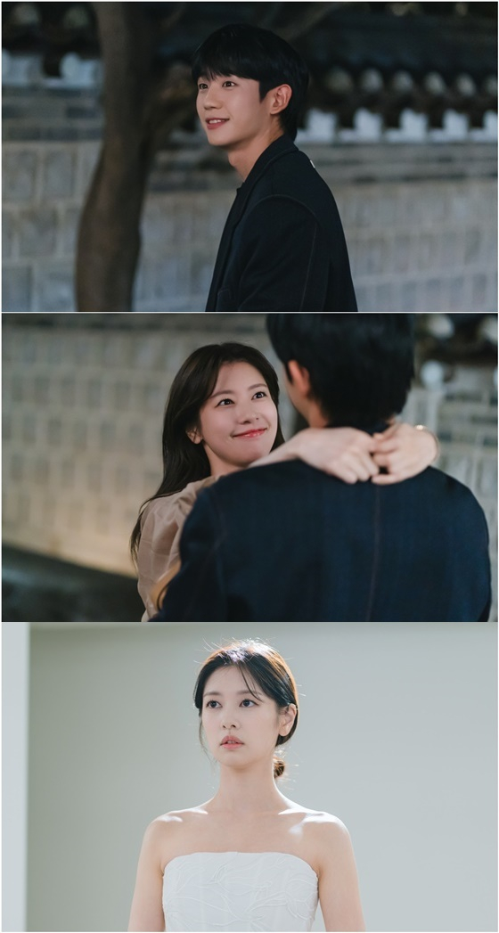 오랜 시간을 돌고 돌아 사랑을 확인한 만큼, 최승효와 배석류는 함께하는 매 순간 행복의 연속이다. 이날 공개된 사진에서도 달콤한 밤공기를 맞으며 동네 데이트를 즐기는 두 사람의 모습이 눈길을 끈다. 꿀 떨어지듯 애정 가득한 최승효의 눈빛과 그의 목에 팔을 두른 배석류의 미소, 그야말로 빈틈없이 완벽한 행복이 느껴진다. 여기에 배석류의 청초한 웨딩드레스 자태에 시선을 떼지 못하는 최승효의 모습도 함께 공개돼 최종회에 대한 기대감을 고조시킨다.