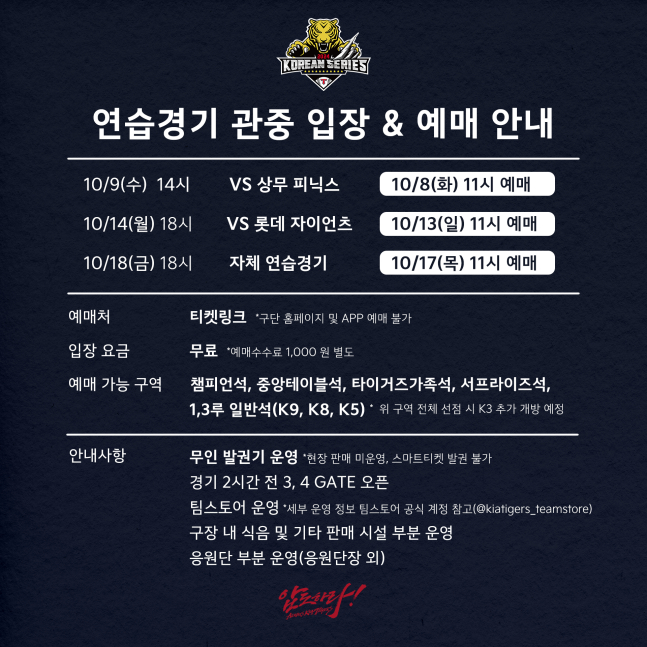 KIA 타이거즈가 한국시리즈 대비를 위한 연습경기에 팬들을 초대한다.