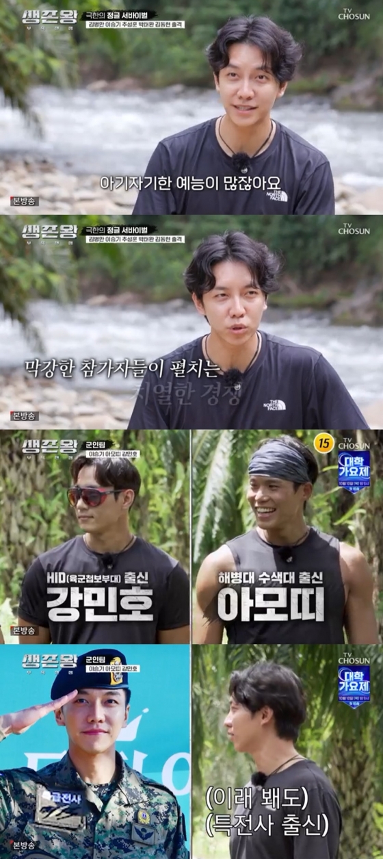 7일 오후 첫 방송된 TV CHOSUN 예능 '생존왕 : 부족전쟁'(이하 '생존왕')에서는 피지컬·정글·군인·국가대표 총 4팀으로 나뉜 12명의 정예 멤버가 정글 오지에서 10일간 자급자족으로 살아남으며 생존경쟁을 펼쳤다.
