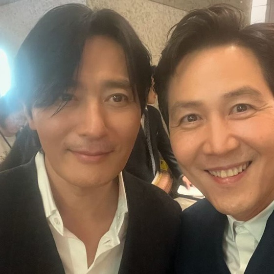 이정재는 7일 자신의 인스타그램에 이날 열린 영화 '보통의 가족'(감독 허진호) VIP 시사회 참석을 인증했다. "'보통의 가족' 시사회"라는 메시와 함께 주연 장동건과 찍은 셀카를 공개한 것.
