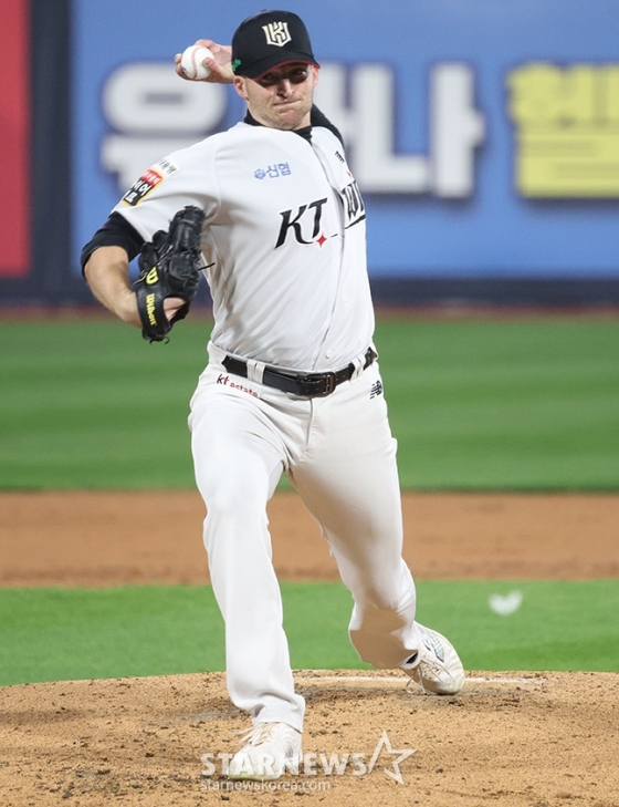 벤자민은 8일 오후 수원 KT 위즈파크에서 펼쳐진 LG와 2024 신한 SOL 뱅크 KBO 포스트시즌 준플레이오프 3차전에 선발 등판, 5이닝 동안 6피안타(2피홈런) 2볼넷 4탈삼진 5실점(4자책)으로 흔들렸다. 이날 총 24명의 타자를 상대한 가운데, 공은 95개를 던졌다.