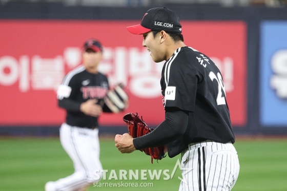 손주영은 올해 KT전에서 3경기에 등판해 승리 없이 2패 평균자책점 6.19로 안 좋았다. 그러나 이날 반전투를 펼쳤다. 염 감독은 올 시즌 내내 손주영을 두고 늘 "류현진과 김광현, 양현종의 계보를 이을 선수"라며 칭찬을 아끼지 않았다. 그리고 손주영은 이런 사령탑의 기대에 제대로 부응하며 영웅으로 등극했다.