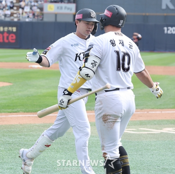 KT의 화력은 계속 이어졌다. KT는 4회말 3점을 올리며 승부를 4-3으로 뒤집었다. 이어 5회에는 강백호가 김진성을 상대로 솔로포를 작렬시키며 5-3까지 달아났다.