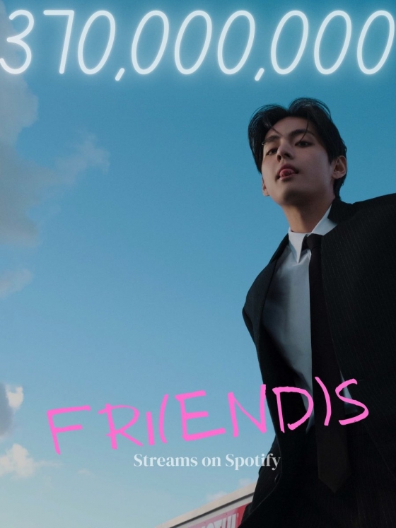 방탄소년단(BTS) 뷔의 '프렌즈'(FRI(END)S)가 글로벌 최대 음원 플랫폼 스포티파이(Spotify)에서 3억 7000만 스트리밍을 돌파하며 인기를 빛냈다.