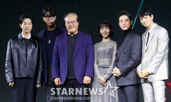 10일 오전 서울 종로구 JW메리어트 동대문 스퀘어 서울에선 넷플릭스 영화 '전,란' 제작보고회가 열렸다. 연출자 김상만 감독과 출연 배우 강동원, 박정민, 차승원, 김신록, 정성일 등이 참석했다.