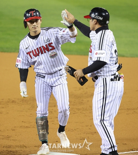 신민재가 출루하며 1사 1루 상황이 만들어졌다. LG 타석에는 오스틴 딘이 서 있었다. 여기서 신민재는 KT 배터리의 틈을 파고들며 2루 도루를 성공시켰다. KT 포수 장성우의 송구가 오른쪽으로 빗나갔고, 이 사이 신민재는 2루에서 벌떡 일어선 뒤 3루에 안착했다.