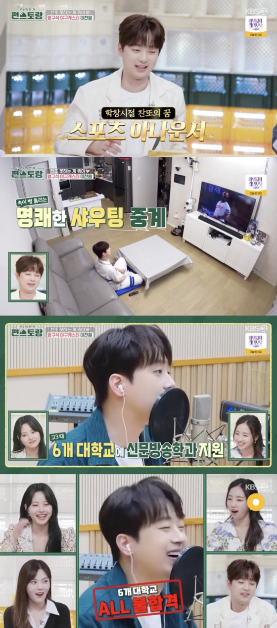이어 이찬원은 "(실제로) 대학 입시 당시 수시 원서 6개를 신문방송학과로 지원했다. 그런데 정말 놀랍게 다 떨어졌다"라며 학창 시절을 회상했다.