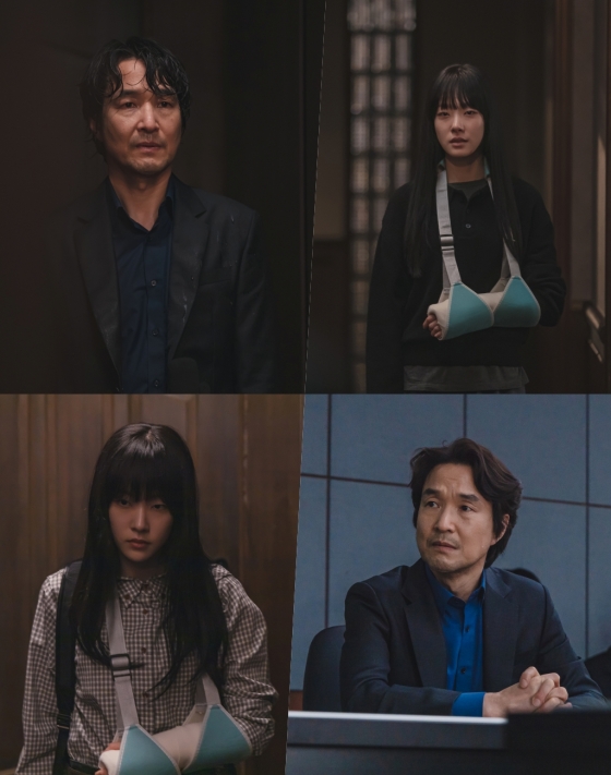 이 가운데 공개된 2회 스틸컷에는 딸을 향한 의심과 믿음의 기로에서 처절해지는 장태수의 모습이 담겨 있다. 딸의 비밀을 캐기 위해 비를 맞으며 돌아다닌 모습, 경찰서 회의에서 마음을 졸이며 사건 브리핑을 받고 있는 모습이 불안감을 더한다. 특히 빗물에 젖은 것인지 눈물에 젖은 것인지 모를 슬프고도 괴로운 얼굴을 한 태수의 모습이 시선을 강탈한다. 딸을 향한 태수의 먹먹한 눈빛이 그가 무엇을 알아낸 것인지 궁금증을 자극한다.
