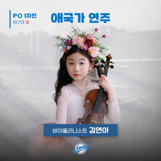 애국가 연주에 나서는 김연아 양은 "포스트시즌 경기에 애국가를 연주하게 되어 영광스럽게 생각한다. 삼성 라이온즈의 승리를 위해 최선을 다해 연주하겠다"고 소감을 밝혔다.
