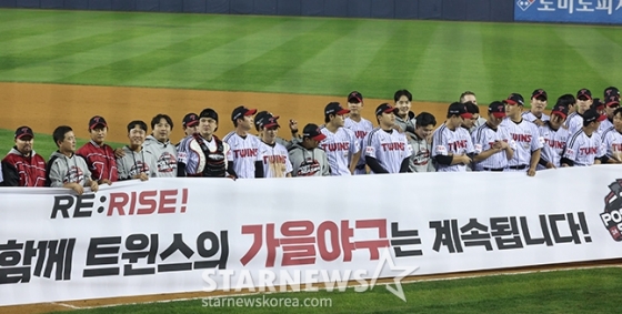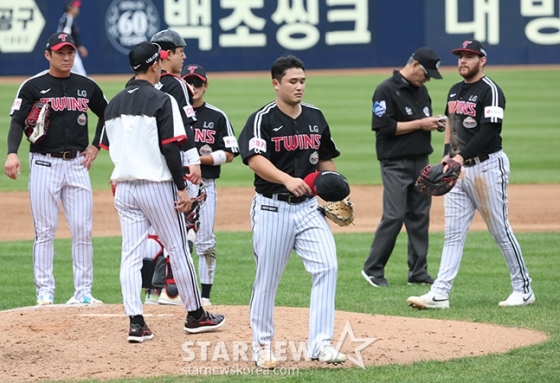 그러나 LG는 이날 플레이오프 1차전에서 선발 최원태가 3이닝 동안 7피안타(2피홈런) 3탈삼진 5실점(5자책)으로 무너졌다. 최원태가 마운드를 내려간 뒤 LG는 불펜 투수 8명을 총동원했지만, 끝내 점수 차를 극복하지 못하며 무릎을 꿇고 말았다.