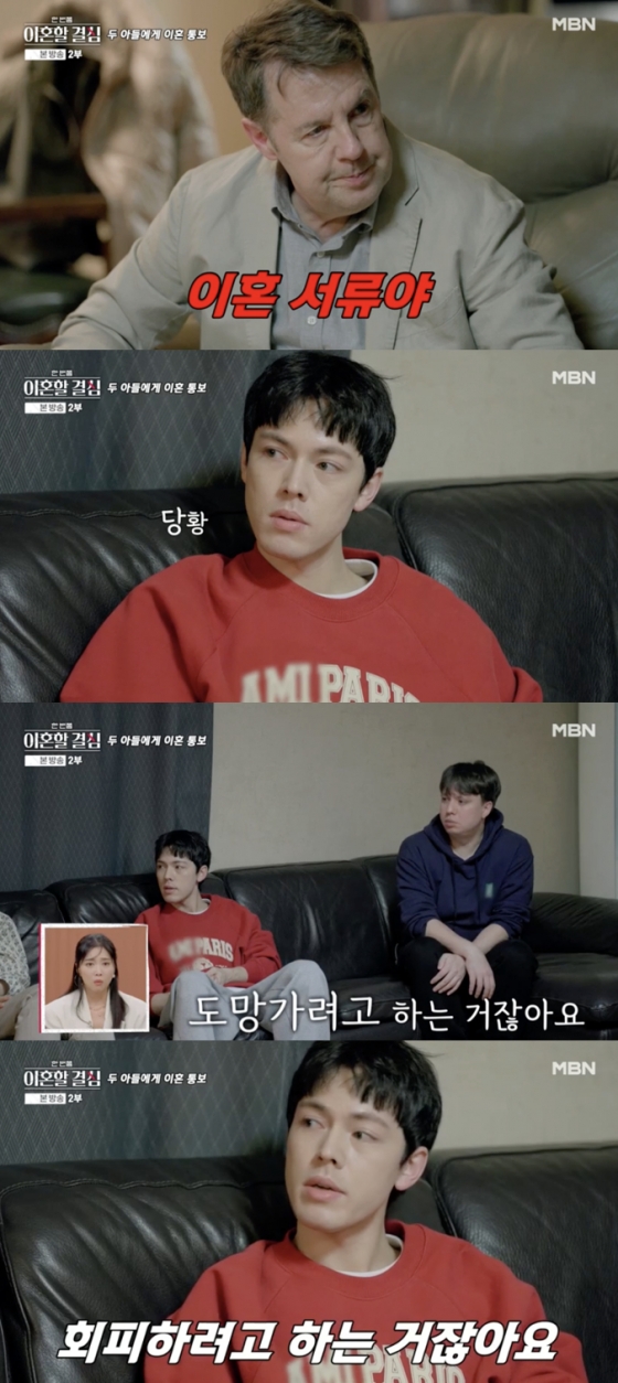 13일 방송된 MBN 예능 프로그램 '한 번쯤 이혼할 결심'(이하 '한이결')에서는 '결혼 37년 차' 로버트 할리-명현숙 부부가 이혼 상담 논의를 나눈 후 두 아들에게 이혼 얘기를 꺼낸 장면이 그려졌다.